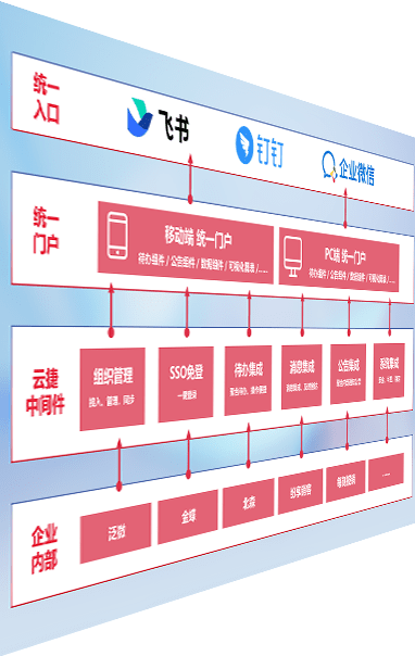对协作平台提供支持服务,,支持企业应用与协作平台对接,,包含组织同步、、、、消息集成、、、、待办集成等。。。支持目前主流的协作平台:钉钉、、、、企微和飞书。。。。